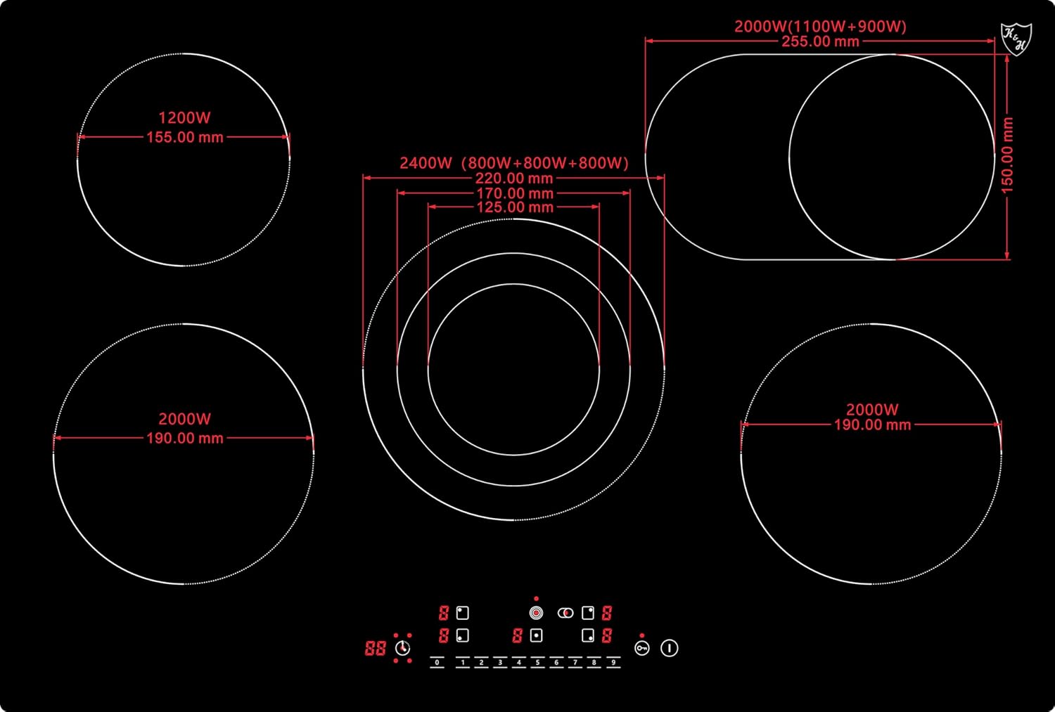 • Timerfunktion pro Kochzone: 0-99 Minuten in 1 Minuten-Intervall