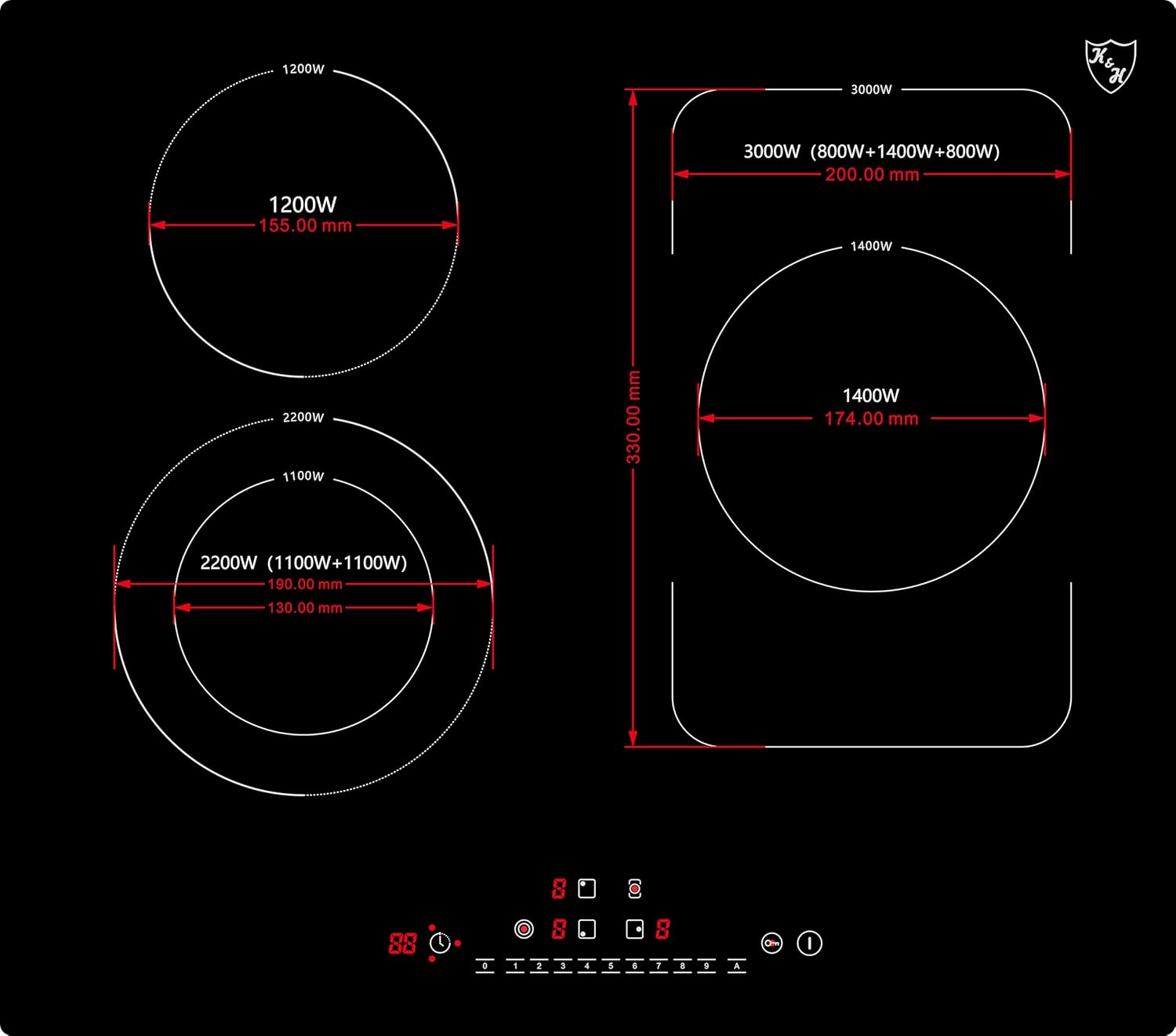 • Timerfunktion pro Kochzone: 0-99 Minuten in 1 Minuten-Intervall