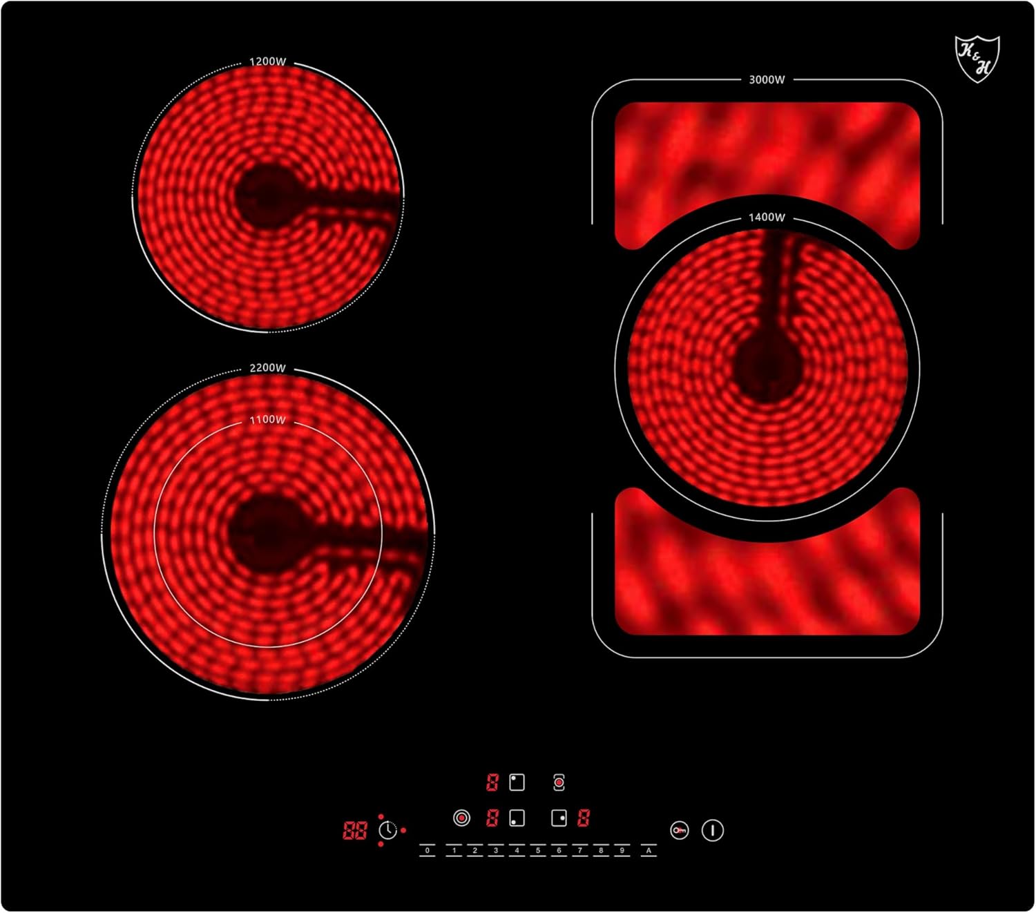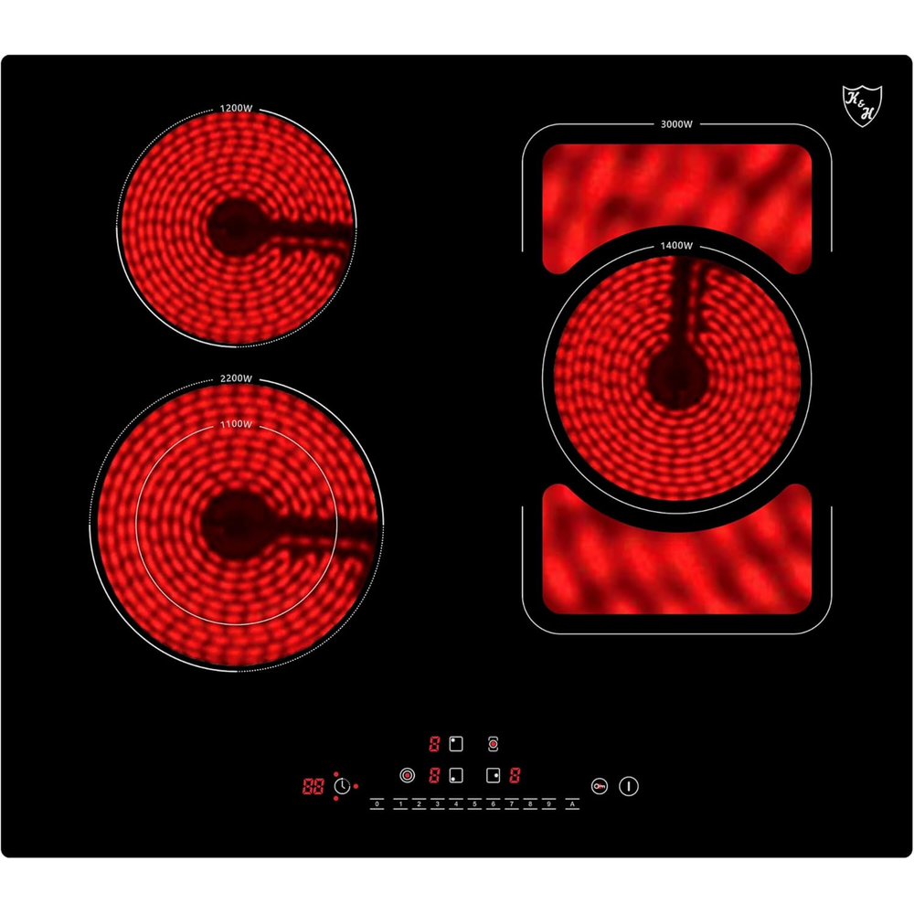 K&H® 4 Zonen Glaskeramikkochfeld mit Knebel Steuerung 59cm Elektro Autark rahmenlos CK-7206K