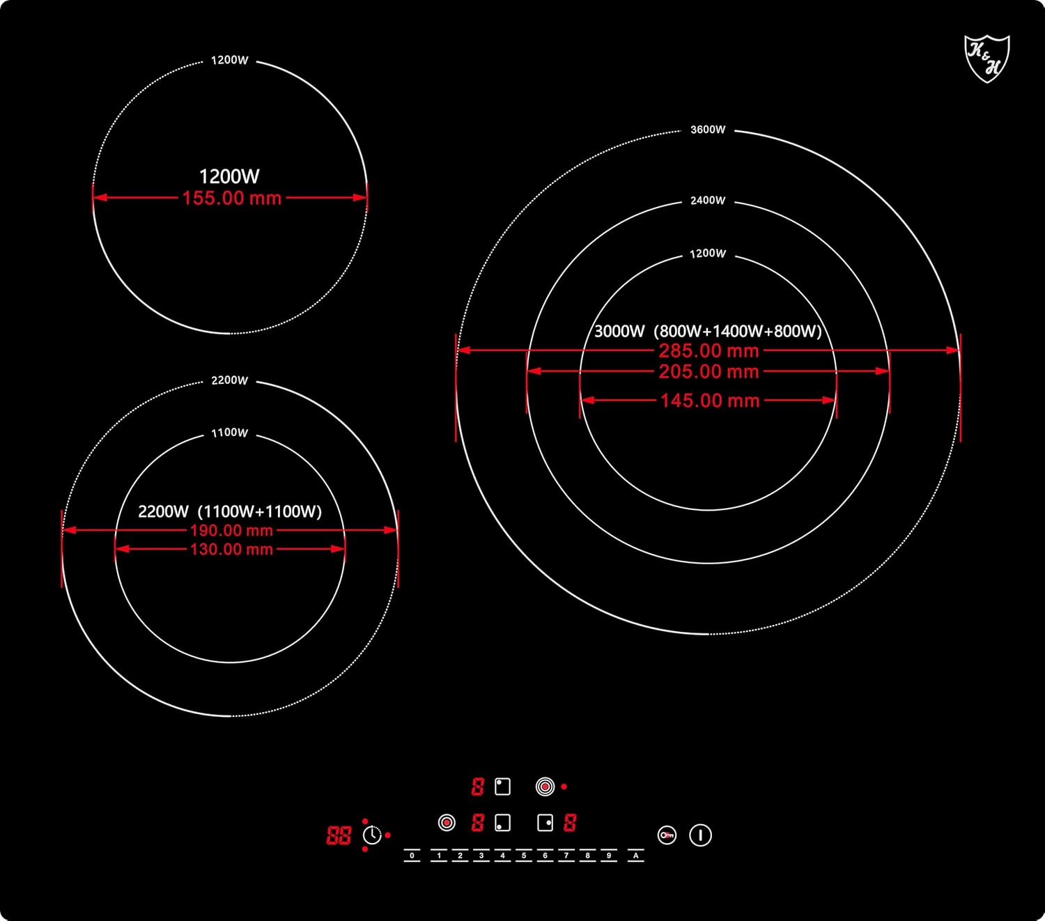 K&H® Domino Glaskeramikkochfeld Knebel Steuerung CK-3002K